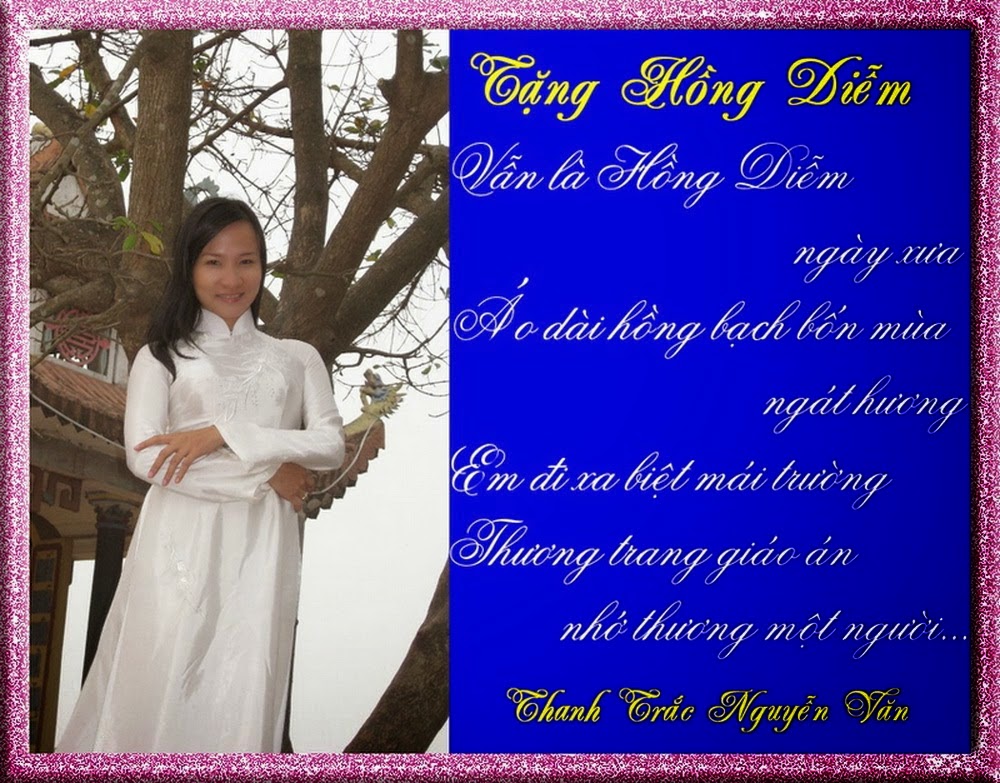 *Cô Hồng Diễm là giáo viên ngữ văn cũ của trường PTTH Võ Thị Sáu tp.HCM. Ngày xưa cô Hồng Diễm xinh đẹp như một đóa hoa hồng bạch - cô vẫn thường lên lớp với tà áo dài trắng. Hiện giờ cô Hồng Diễm đã cùng chồng chuyển sang kinh doanh. Cô gái trong thơ tranh là chân dung thật của cô Hồng Diễm.